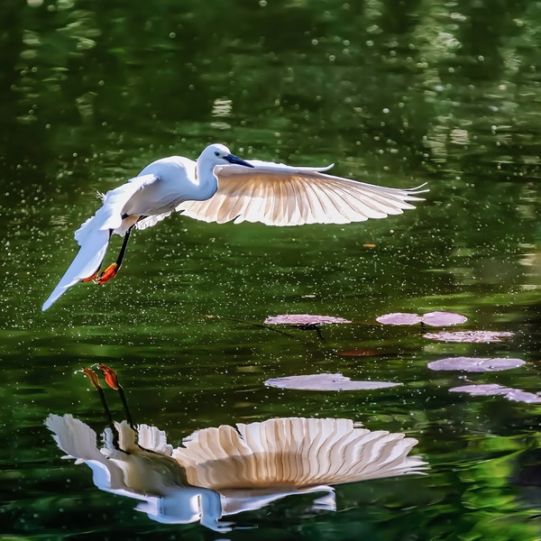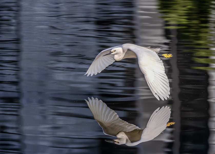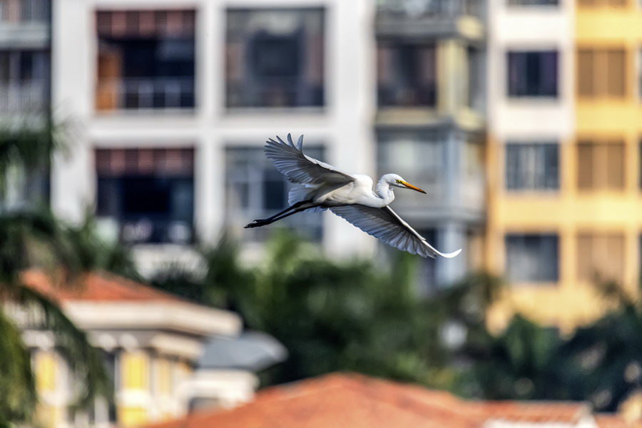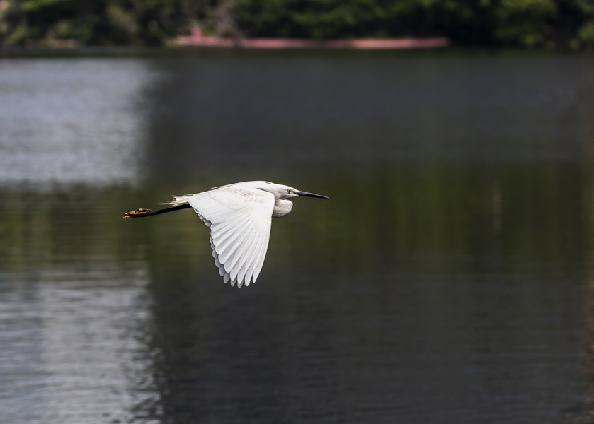 4月15日,攝于南山區(qū)華僑城天鵝堡附近。這是深圳拍鷺鳥的其中一個(gè)好去處。白鷺飛行時(shí)頭往回縮至肩背處,頸向下曲成袋狀,兩腳向后伸直,遠(yuǎn)遠(yuǎn)突出于尾后,兩翅緩慢地鼓動飛翔。徐捷攝