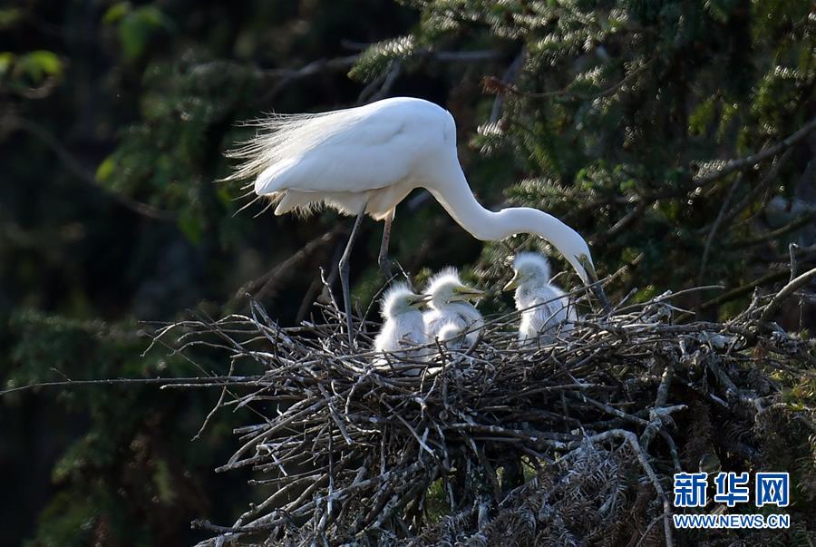 象山森林公園內的白鷺(4月26日攝)。近日,在江西省南昌市新建區(qū)象山森林公園內,已安家筑巢的大批鷺鳥正陸續(xù)孵化后代,一派生機勃勃的景象。新華社記者彭昭之攝