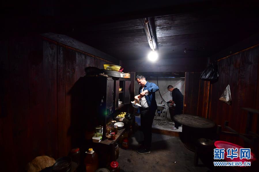 李義成(左)在村民家準備晚餐(4月26日攝)。新華社記者黃孝邦攝
