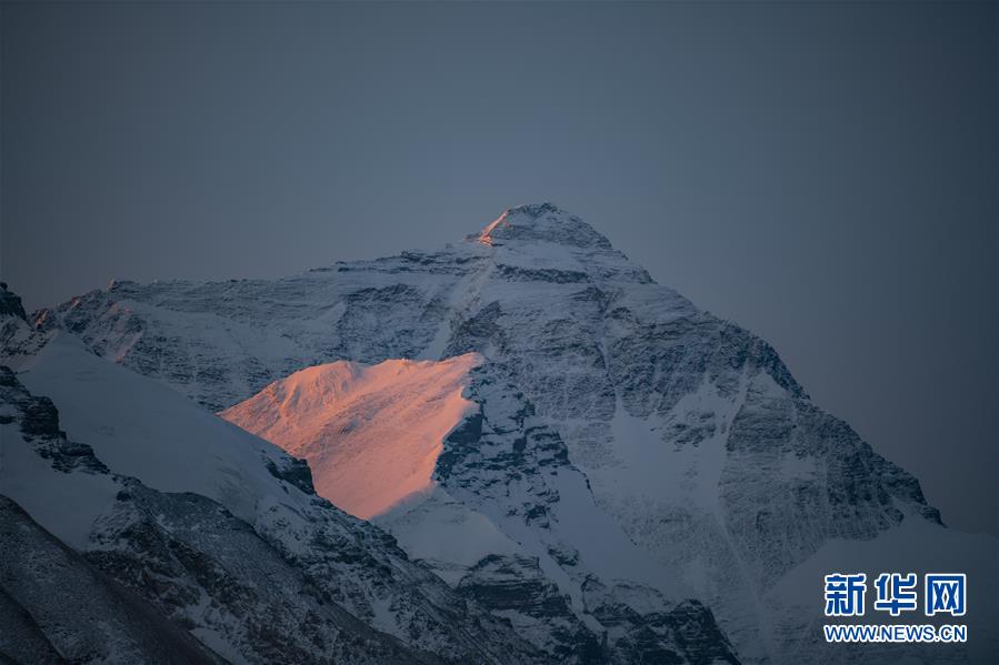 日出時(shí)分,朝霞映照珠峰(4月15日攝)。新華社記者孫非攝
