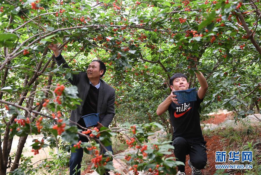 4月28日,兩名游客在云南省富民縣赤鷲鎮(zhèn)普橋村果園摘櫻桃。云南省富民縣赤鷲鎮(zhèn)大力發(fā)展特色種植業(yè),全鎮(zhèn)種植櫻桃4000余畝,幫助當地農民增收致富。新華社記者楊宗友攝