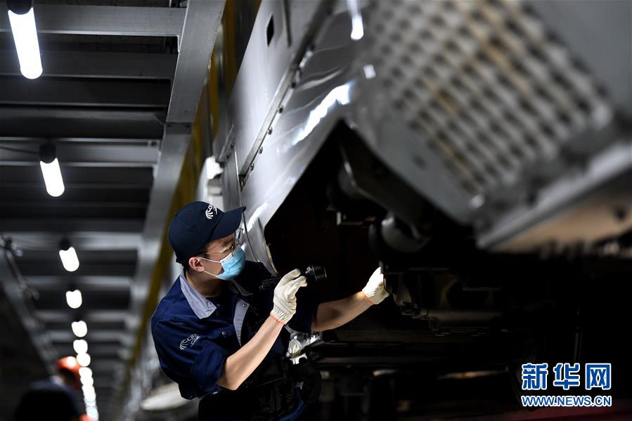 4月29日夜,合肥南動(dòng)車運(yùn)用所的工作人員對(duì)動(dòng)車組進(jìn)行檢修。每當(dāng)夜深人靜的時(shí)候,合肥南動(dòng)車運(yùn)用所卻燈火通明,“動(dòng)車安全守護(hù)者”們堅(jiān)守崗位,對(duì)動(dòng)車組進(jìn)行全面細(xì)致檢修。新華社記者 劉軍喜 攝