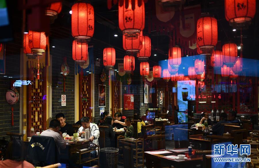 5月2日,市民在青海西寧一餐館內(nèi)就餐?!拔逡弧奔偃掌陂g,人們以多種方式放松心情、享受假日。新華社記者張宏祥攝
