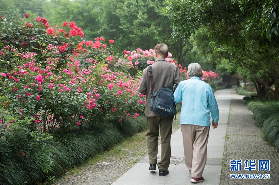5月5日,游客在西湖畔的郭莊觀看月季花展。“五一”期間,第八屆杭州西湖月季花精品展在杭州西子湖畔舉行,展出國內(nèi)外700余個(gè)月季品種。新華社記者翁忻旸攝