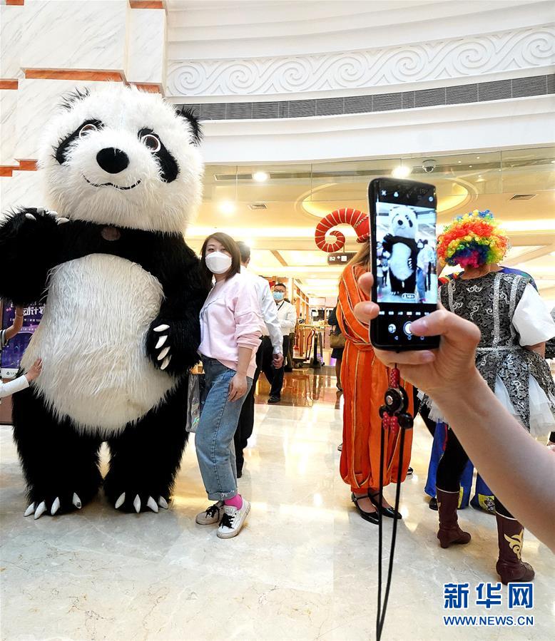 5月5日,顧客在上海環(huán)球港商場(chǎng)與大熊貓人偶合影。5月4日晚,上海首次啟動(dòng)大規(guī)模商業(yè)促銷(xiāo)活動(dòng)“五五購(gòu)物節(jié)”,多家在線(xiàn)新經(jīng)濟(jì)企業(yè)參與,通過(guò)線(xiàn)上流量?jī)?yōu)勢(shì)反哺線(xiàn)下賣(mài)場(chǎng),實(shí)現(xiàn)電商與實(shí)體零售融合互動(dòng),激活消費(fèi)潛力、驅(qū)動(dòng)消費(fèi)復(fù)蘇。據(jù)“上海發(fā)布”的消息,截至5日14時(shí)12分,“五五購(gòu)物節(jié)”上海地區(qū)消費(fèi)支付總額已超100億元。新華社記者陳飛攝
