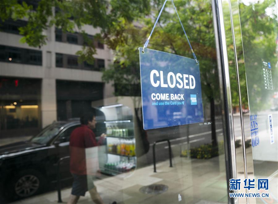 5月6日,在美國首都華盛頓,一家披薩店因新冠疫情暫時關(guān)閉。美國自動數(shù)據(jù)處理公司(ADP)6日公布的數(shù)據(jù)顯示,由于新冠疫情沖擊美國經(jīng)濟(jì)和企業(yè),4月美國私營部門大幅削減約2023.6萬個就業(yè)崗位。新華社記者劉杰攝
