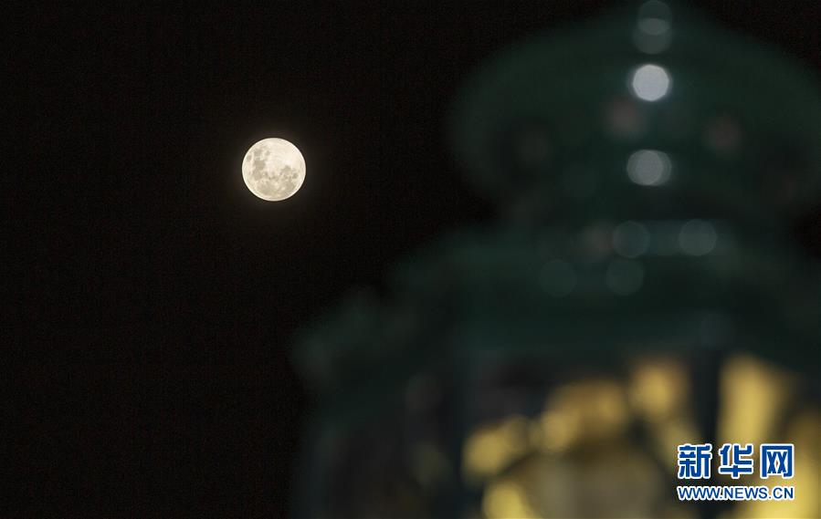 這是5月7日在貴陽拍攝的“超級月亮”?!俺壴铝痢敝傅氖窃铝廖挥诮攸c時剛好出現(xiàn)滿月。新華社記者劉續(xù)攝
