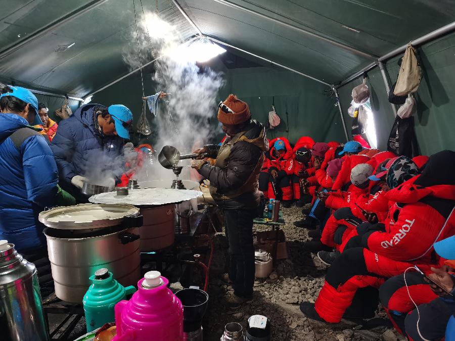 登山隊(duì)連同修路隊(duì)海拔6500米上召開(kāi)協(xié)調(diào)會(huì)議