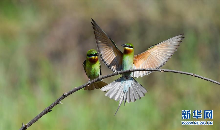 在??谖逶春酉掠畏浠⒈Wo(hù)小區(qū),栗喉蜂虎在樹枝上休息(5月7日攝)。