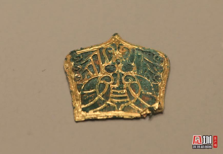 2020年5月10日報道,近十年來最大規(guī)模三國文物展“三國志——文化主題特展”,正在中華世紀壇展出。圖為西晉,蟬紋金珰。