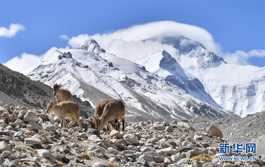 棲息在珠穆朗瑪峰國(guó)家級(jí)自然保護(hù)區(qū)內(nèi)的巖羊(5月8日攝)。新華社記者晉美多吉攝