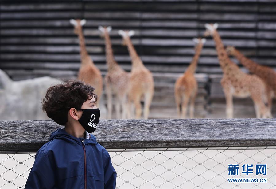 6月9日,一名男孩在法國巴黎動物園內參觀長頸鹿。受新冠疫情影響關閉了近3個月的巴黎動物園于8日重新開放。新華社記者高靜攝