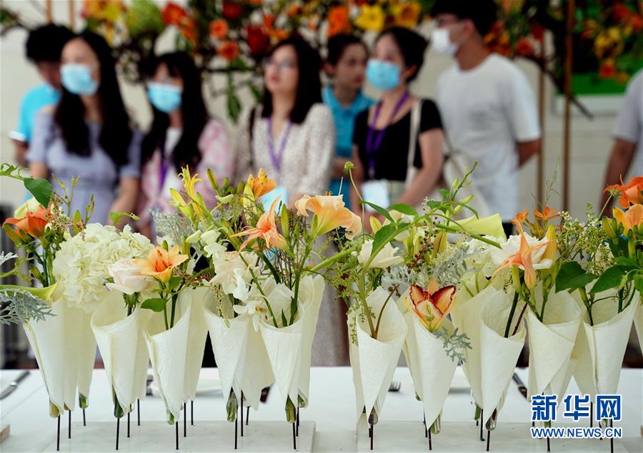 這是開幕式現(xiàn)場展示的大學生設(shè)計創(chuàng)作的萱草花小花束(6月13日攝)。6月13日,“2020中國(上海)萱草文化節(jié)”在上海應用技術(shù)大學開幕,校園里數(shù)百個品種的萱草花競相綻放,萱草科研推廣、萱草文化交流等多項活動同時舉行。新華社記者 劉穎 攝