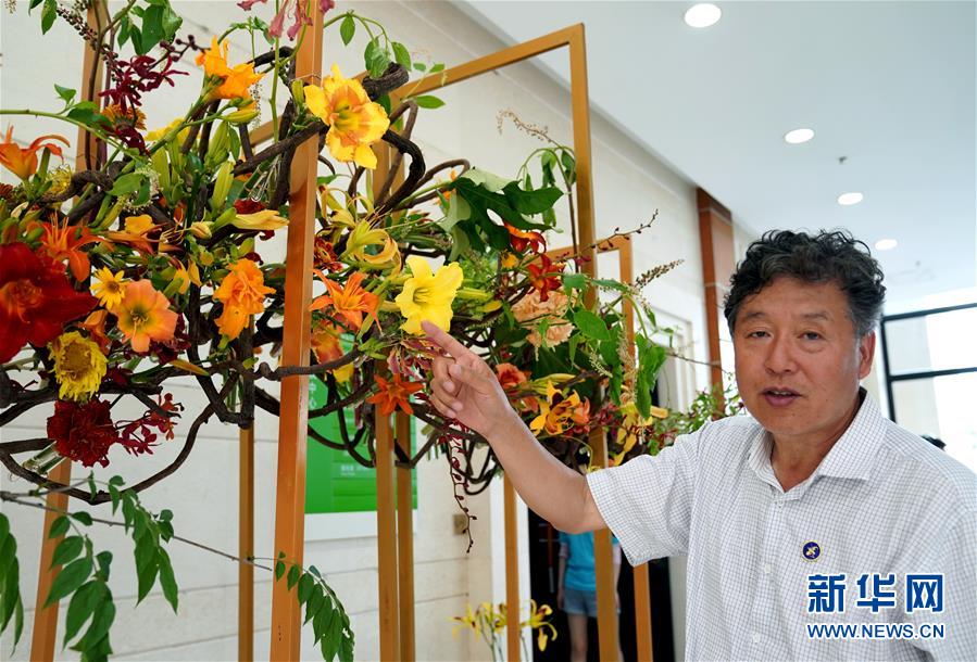 6月13日,第45屆世界技能大賽花藝項目冠軍、上海應用技術(shù)大學學生陸亦煒在介紹自己主持設(shè)計和創(chuàng)作的花藝作品。當日,“2020中國(上海)萱草文化節(jié)”在上海應用技術(shù)大學開幕,校園里數(shù)百個品種的萱草花競相綻放,萱草科研推廣、萱草文化交流等多項活動同時舉行。新華社記者 劉穎 攝