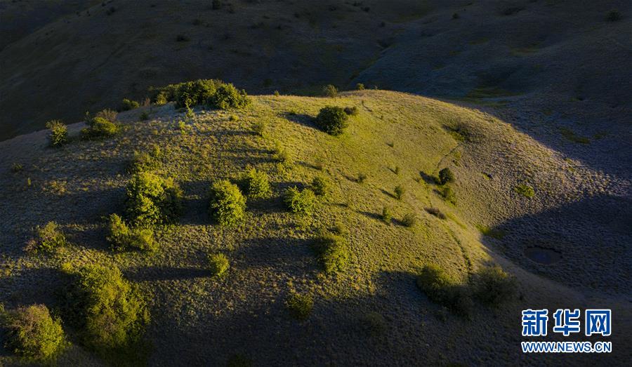 6月30日,朝霞照耀下的神田草甸(無(wú)人機(jī)照片)。位于陜西省安康市嵐皋縣與重慶市城口縣交界處大巴山神田主脊北坡的神田草甸,面積超過(guò)1.1萬(wàn)畝。夏日的朝霞中,起伏的草甸仿佛一塊寬大無(wú)邊的綠色地毯,鑲嵌在大巴山上,如詩(shī)如畫。新華社記者陶明攝