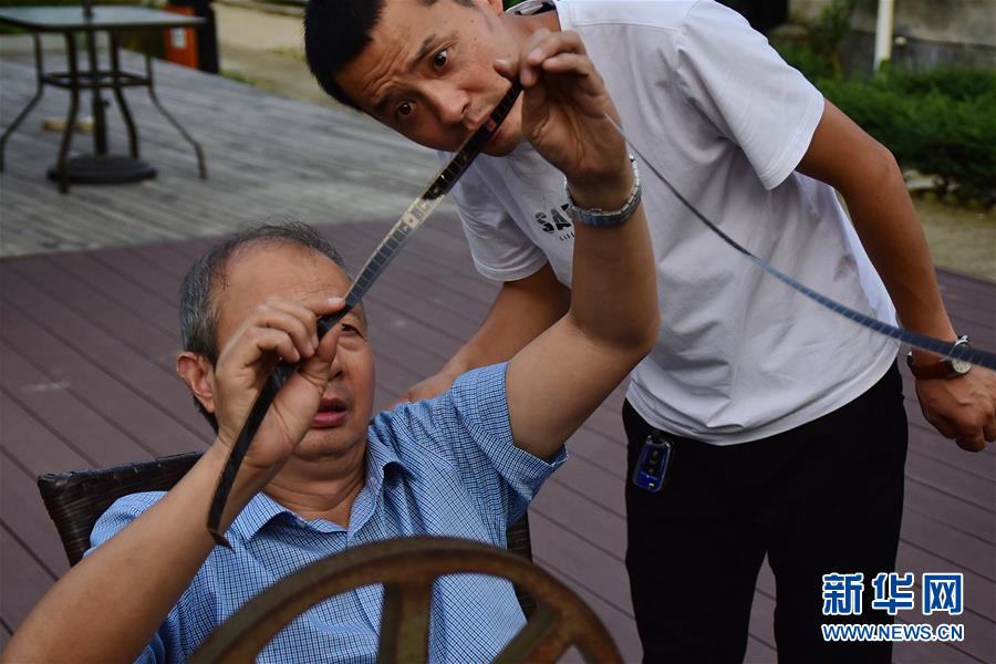 在浙江嘉興桐鄉(xiāng)市洲泉鎮(zhèn)馬鳴村,王志華、朱文炳、朱生榮、朱強四代電影放映員,“接力”放映電影五十余年。一臺放映機、幾盤膠片、一面白墻,構(gòu)成他們的“流動電影院”,“噠噠”的走帶聲轉(zhuǎn)出了光影老味道,也轉(zhuǎn)動了整村人的文化生活。第四代放映人“85后”小伙朱強從小在幕布前長大,深受父輩影響。隨著數(shù)字電影的普及,膠片電影逐漸退場。如今的他在馬鳴電影館、學校等場所進行教學、展示等活動,宣傳電影文化。對他而言,一代接一代從事電影工作,就是為了承續(xù)傳統(tǒng)?!皫煚敔斀涛覀冋J真放好每部電影,即便只有一位觀眾,我們也不會讓它停機?!敝鞆娬f。