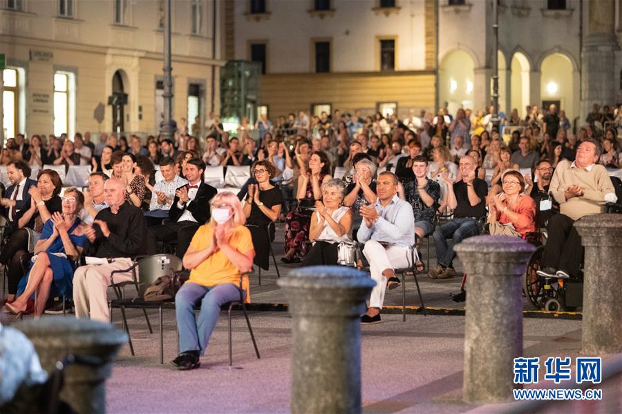 7月1日,觀眾在斯洛文尼亞首都盧布爾雅那觀看藝術(shù)節(jié)開幕式演出。當日,第68屆盧布爾雅那藝術(shù)節(jié)拉開帷幕。新華社記者彭立軍攝