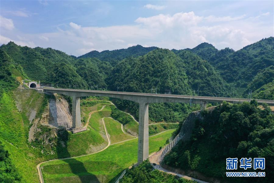 7月6日拍攝的安六鐵路彭家沖一號(hào)大橋(無人機(jī)照片)。當(dāng)日,新建貴州安六鐵路(安順至六盤水)聯(lián)調(diào)聯(lián)試工作進(jìn)入收尾階段,開通前的各項(xiàng)準(zhǔn)備工作已基本就緒。安六鐵路線路全長約125公里,設(shè)計(jì)時(shí)速250公里,為國家I級雙線客運(yùn)專線。建成投用后,貴陽至六盤水的鐵路旅行時(shí)間可從現(xiàn)在的3.5小時(shí)縮短為1小時(shí)左右,貴州省六盤水市將全面接入全國高鐵網(wǎng)。新華社記者劉續(xù)攝