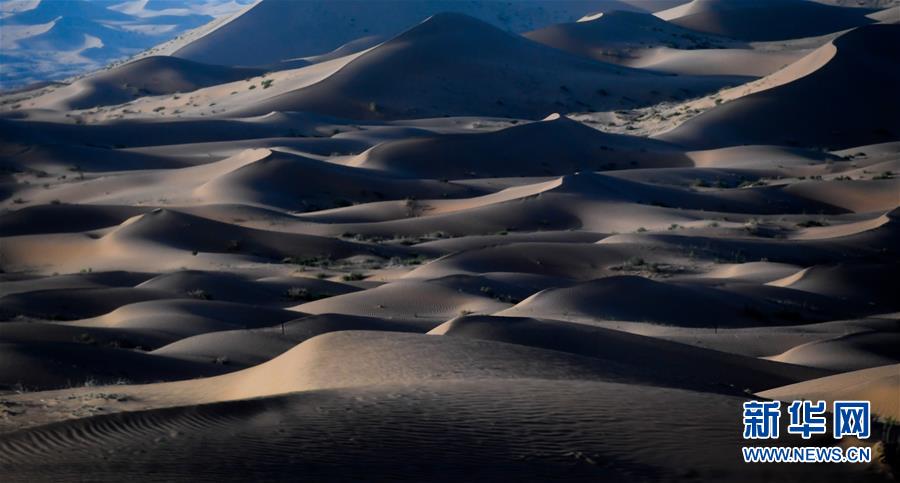 這是7月8日拍攝的騰格里沙漠風光。位于內(nèi)蒙古自治區(qū)阿拉善左旗西南部和甘肅省中部邊境的騰格里沙漠是我國第四大沙漠,總面積約為4.3萬平方公里。夏日傍晚,騰格里沙漠連綿的沙丘被日光勾勒出美麗的線條,美不勝收。新華社記者連振攝