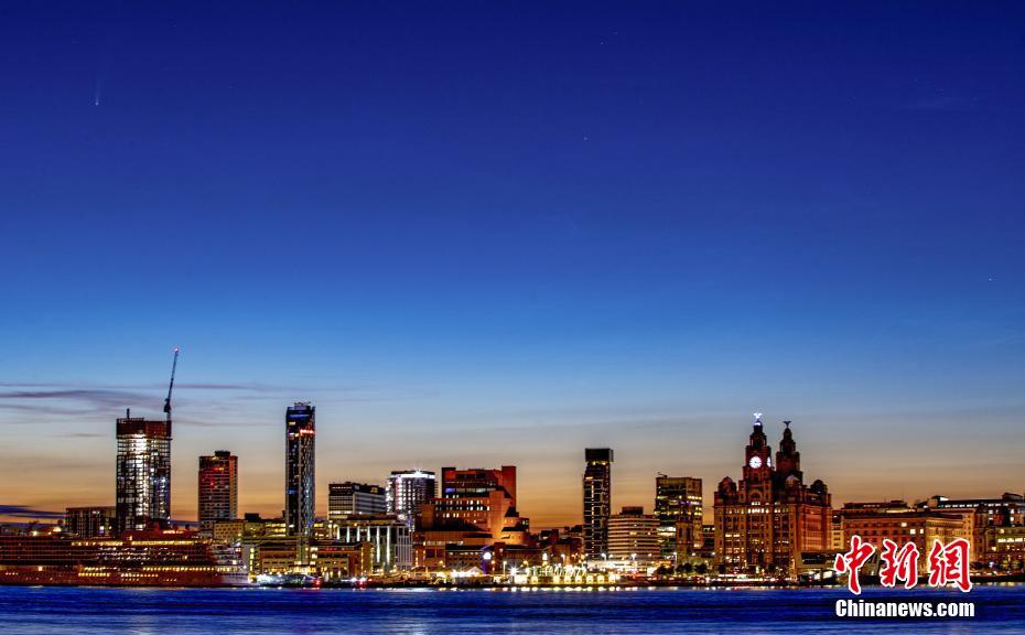 當(dāng)?shù)貢r(shí)間7月12日,英國(guó)利物浦,清晨時(shí)分,NEOWISE彗星出現(xiàn)在空中。圖片來源:視覺中國(guó)