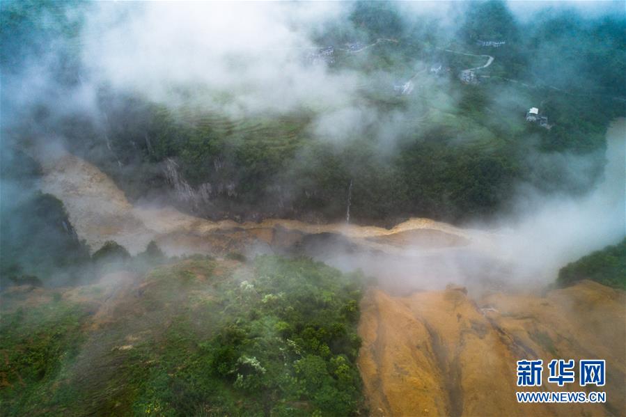 7月21日拍攝的因恩施州屯堡鄉(xiāng)馬者村山體滑坡形成的堰塞湖(無人機照片)。當日,湖北恩施土家族苗族自治州屯堡鄉(xiāng)馬者村沙子壩滑坡體出現(xiàn)大面積滑移,形成堰塞湖,上游水位已上漲5米左右。目前,相關部門和鄉(xiāng)鎮(zhèn)正在組織形成堰塞湖后可能受影響區(qū)域的群眾轉移和交通管控工作。大龍?zhí)端畮煺诩涌祢v庫,最大限度保證廣大群眾生命財產(chǎn)安全。新華社記者肖藝九攝