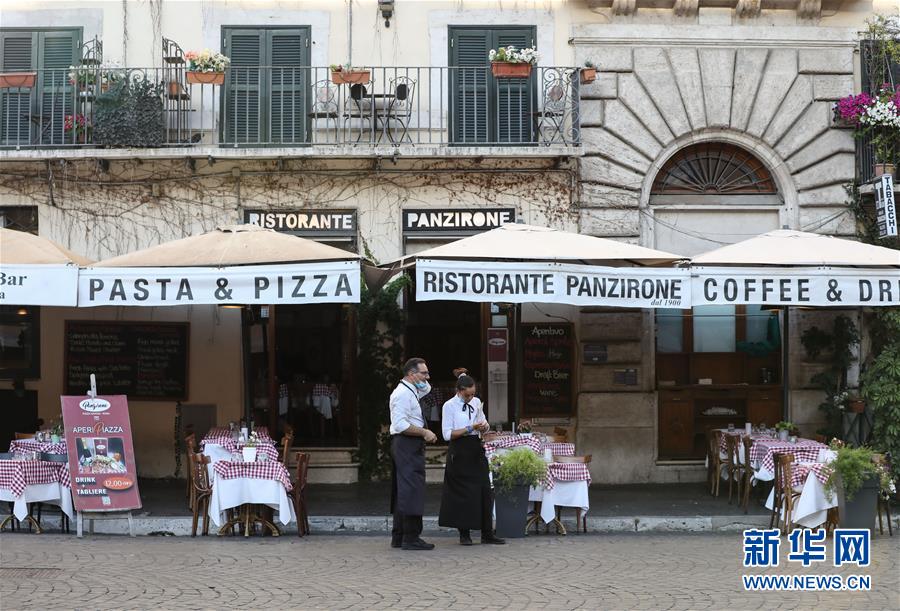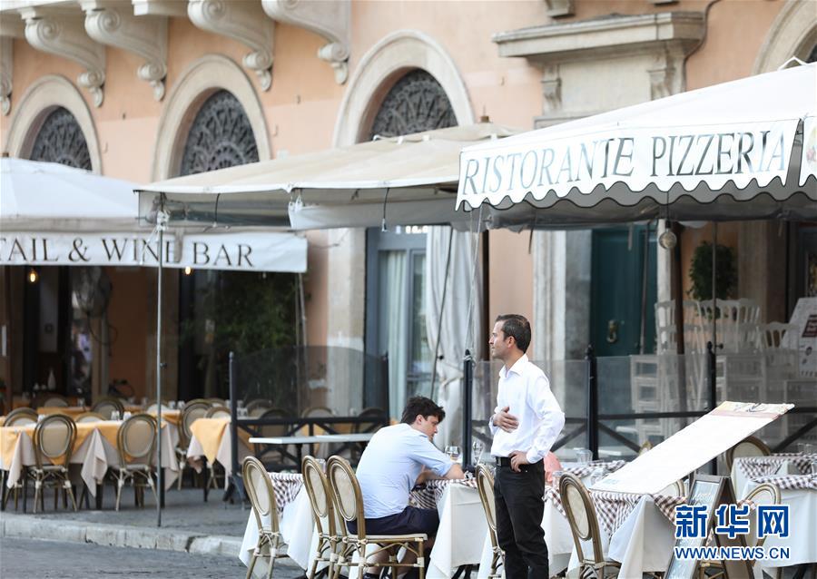8月4日,人們在意大利首都羅馬一家餐廳用餐。受新冠疫情影響,今年夏天羅馬的歷史中心區(qū)游客比往年明顯減少。新華社記者程婷婷攝