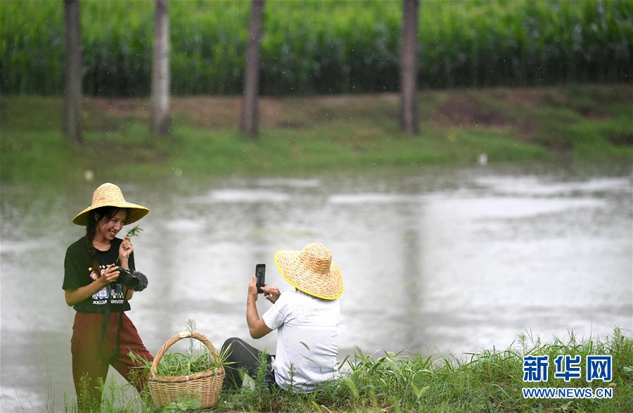 8月5日,王曉楠(左)與父親在河邊拍攝短視頻。