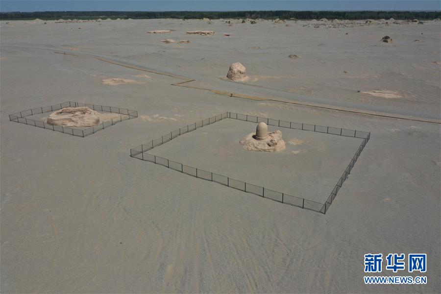 這是米蘭遺址內(nèi)的佛寺遺址(7月24日攝,無(wú)人機(jī)照片)。新華社記者宿傳義攝