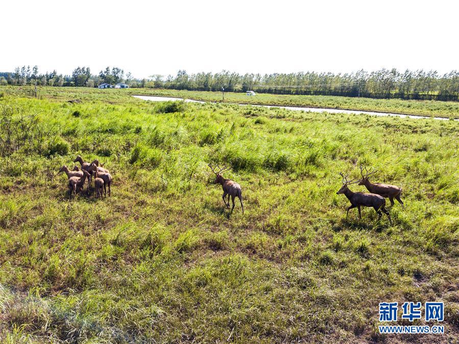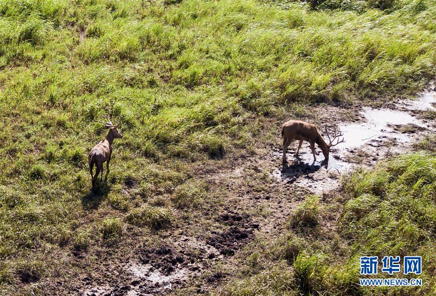 這是8月7日在東洞庭湖麋鹿和鳥類救治避難中心拍攝的麋鹿(無人機照片)。位于湖南省岳陽市的東洞庭湖麋鹿和鳥類救治避難中心成立于2016年9月,占地400余畝,中心自建成后就承擔起東洞庭湖區(qū)域全部麋鹿的救援、醫(yī)治、康復(fù)和喂養(yǎng)任務(wù)。目前該中心共有14只麋鹿正在接受救助。新華社記者李鑫攝