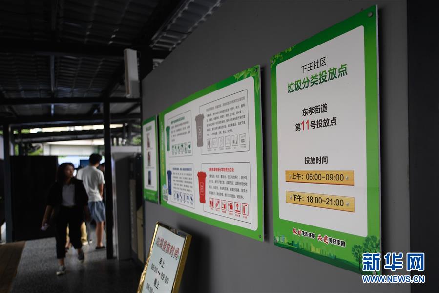 在金華市金東區(qū)東孝街道一社區(qū)拍攝的垃圾分類投放點(diǎn)(7月16日攝)。近年來(lái),浙江省通過(guò)創(chuàng)新宣傳教育,多措并舉促進(jìn)垃圾分類投放、收運(yùn)及處置的良性循環(huán),引領(lǐng)垃圾分類成為城鄉(xiāng)居民的生活新風(fēng)尚。新華社記者黃宗治攝。