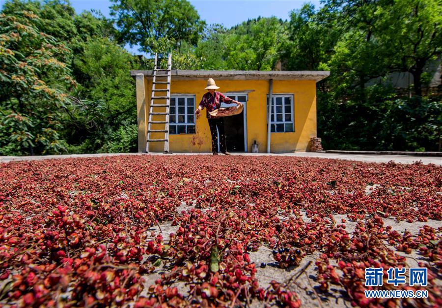 8月9日,武安市徘徊鎮(zhèn)后李甲村農(nóng)民在涼曬采摘的花椒。近日,河北省武安市花椒進(jìn)入收獲季節(jié),當(dāng)?shù)剞r(nóng)民搶抓農(nóng)時(shí),花椒種植基地里一派忙碌景象。近年來,武安市將花椒產(chǎn)業(yè)作為脫貧增收的重要抓手,因地制宜擴(kuò)大花椒種植規(guī)模。目前,全市花椒種植面積約12萬畝。新華社記者王曉攝。
