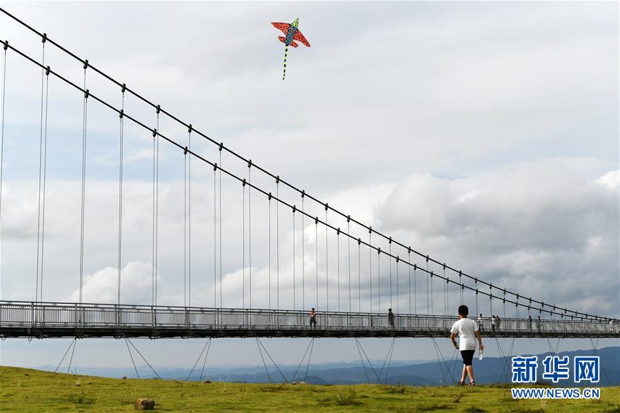 8月8日,游客在貴州省龍里油畫(huà)大草原旅游觀光。近日,貴州省黔南布依族苗族自治州龍里縣境內(nèi)氣候宜人,龍里油畫(huà)大草原、“龍門(mén)鎮(zhèn)”武俠文化主題景區(qū)等景點(diǎn)吸引眾多游客前來(lái)觀光旅游。新華社記者楊文斌攝。