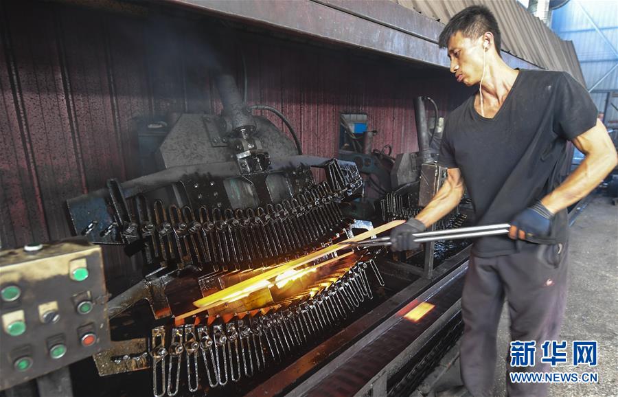 8月9日,河北大城縣南趙扶鎮(zhèn)一家板簧生產(chǎn)企業(yè)員工在板簧淬火生產(chǎn)線上作業(yè)。河北省大城縣南趙扶鎮(zhèn)是該縣農(nóng)機(jī)配件行業(yè)傳統(tǒng)生產(chǎn)基地。疫情以來,南趙扶鎮(zhèn)引導(dǎo)企業(yè)做好風(fēng)險防范,在農(nóng)機(jī)配件行業(yè)與世界各地客商及品牌開展方式多樣的合作,出口訂單不降反升。截至目前,該縣農(nóng)機(jī)配件行業(yè)出口總銷量達(dá)8000余萬元,較去年同期增長30%。新華社記者李曉果攝。