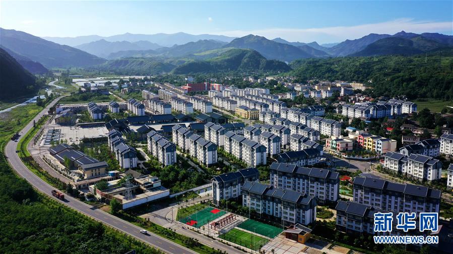 陜西洛南縣保安鎮(zhèn)倉(cāng)圣社區(qū)移民搬遷集中安置點(diǎn)(7月27日攝,無(wú)人機(jī)照片)。
