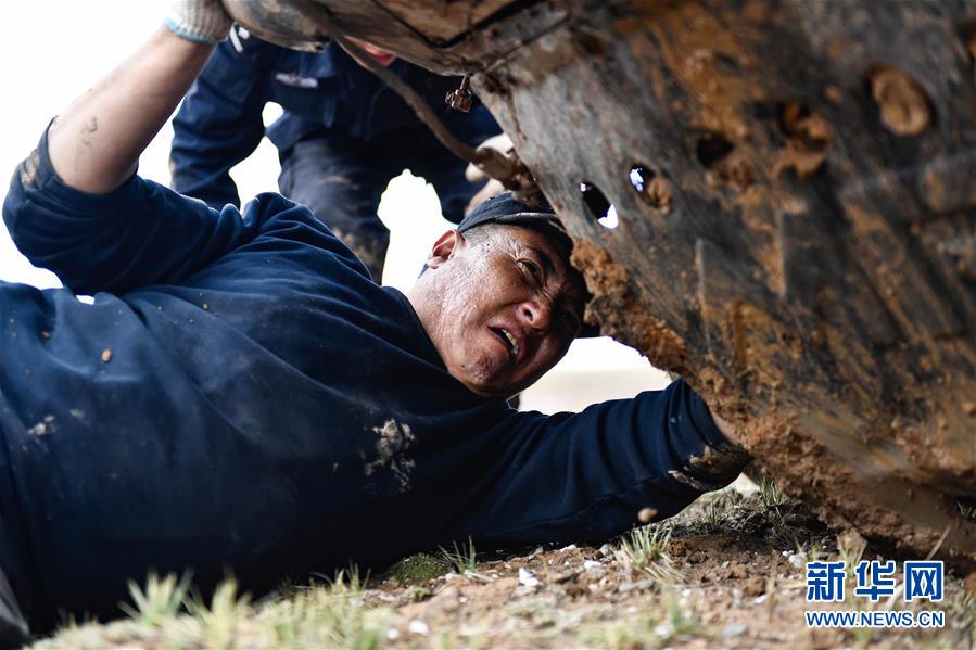 7月6日,卓乃湖保護站站長秋培扎西在可可西里地區(qū)修理車輛。世界自然遺產(chǎn)地可可西里,全球生態(tài)版圖中一處熠熠生輝的坐標,野生動物種類繁多。藏羚羊,被稱為“可可西里的驕傲”。今年藏羚羊遷徙產(chǎn)仔季,記者跟隨可可西里巡山隊員前往“藏羚羊大產(chǎn)房”卓乃湖巡山,感受他們守護“人間凈土”的堅守與奉獻。暴雨、烈日、冰雹、泥濘……通向“藏羚羊大產(chǎn)房”卓乃湖的14個半小時經(jīng)歷,令人難忘。新華社記者張龍攝