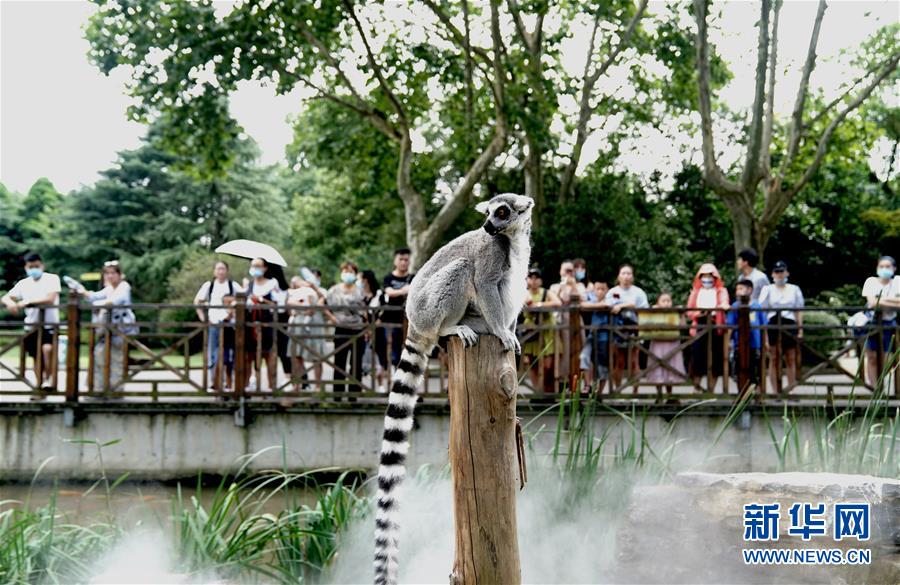 8月11日,上海動物園的環(huán)尾狐猴在“地噴”營造的水霧中玩耍。當日,上海最高溫度達到35攝氏度,上海動物園開啟園內(nèi)安裝的各種噴淋裝置,讓動物們防暑降溫,樂享清涼。新華社記者張建松攝