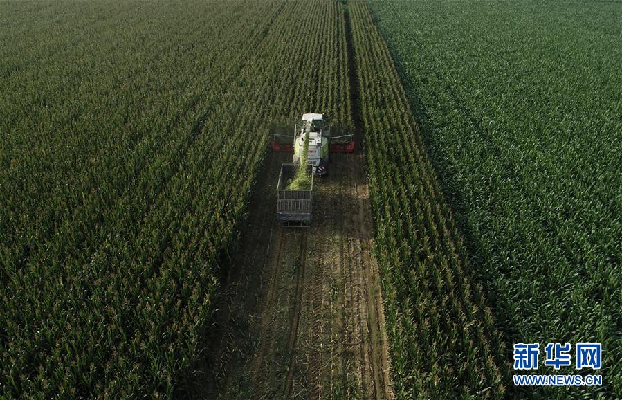 8月11日,灤南縣馬城鎮(zhèn)湛店子村的農(nóng)民使用大型機械收獲青貯玉米(無人機照片)。近日,河北省灤南縣的12萬畝青貯玉米陸續(xù)開始收獲,為當(dāng)?shù)啬膛pB(yǎng)殖提供新鮮優(yōu)質(zhì)飼料。作為河北省奶牛養(yǎng)殖大縣,灤南縣近年來大力推廣奶牛青貯玉米喂養(yǎng)模式,引導(dǎo)農(nóng)民種植青貯玉米,促進(jìn)農(nóng)民增收。新華社記者楊世堯攝