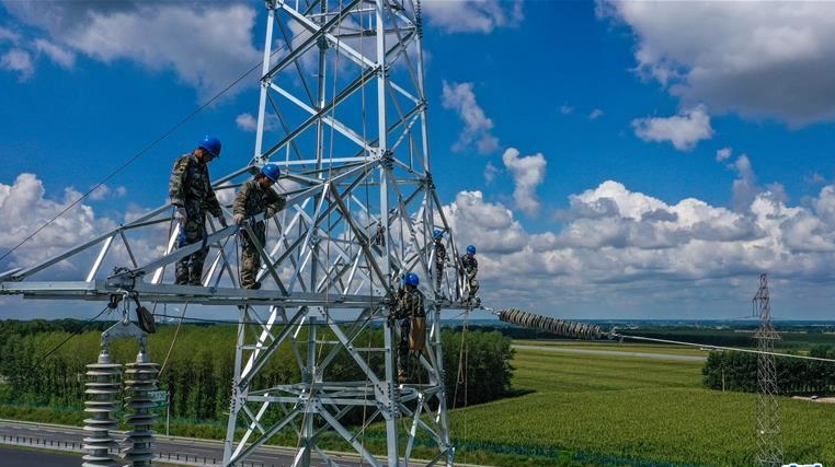 吉林省長春市連續(xù)多日出現(xiàn)高溫天氣,國網(wǎng)長春供電公司輸電運檢中心的送電工們每天清晨開始作業(yè),不畏烈日“烤”驗,堅守工作崗位,確保工程按計劃完成。