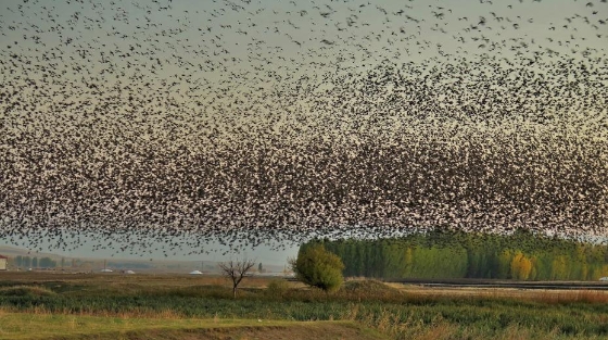 土耳其穆什,椋鳥群遷徙途中,黑壓壓一片遮擋天空。