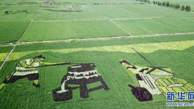 這是7月29日在安徽壽縣安豐塘水庫北堤拍攝的“稻田畫”(無人機拍攝)。近日,在安徽省淮南市壽縣安豐塘水庫北堤的農(nóng)田里,一幅幅生動的稻田畫呈現(xiàn)出別樣田園風景。