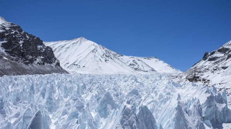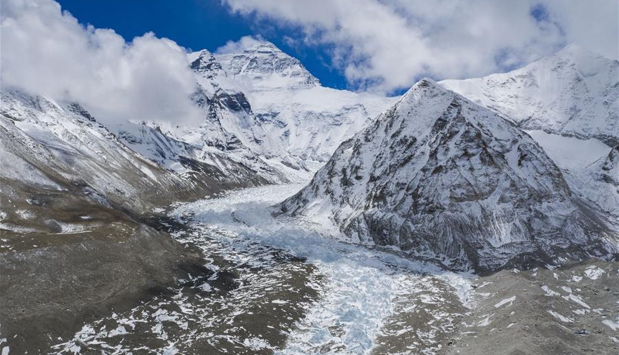 位于珠穆朗瑪峰腳下海拔5400米左右的中絨布冰川,巍峨壯觀,冰塔林托起世界最高峰,讓人嘆為觀止。