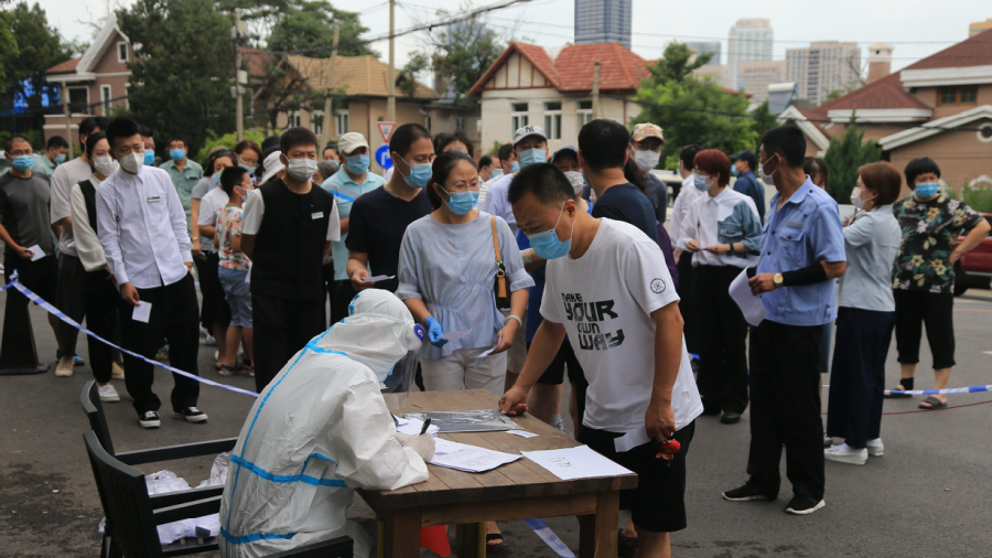 2020年7月26日,遼寧大連,市民進行核酸檢測。