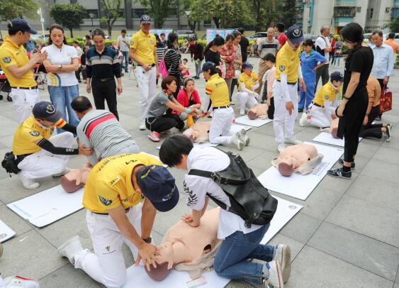 深圳市賽場救護隊的專業(yè)人員在現(xiàn)場為蓮花一村的社區(qū)居民普及了大眾急救技能,并指導(dǎo)大家進行模擬心肺復(fù)蘇的演練,中老年朋友則享受了免費的體質(zhì)檢測服務(wù)。