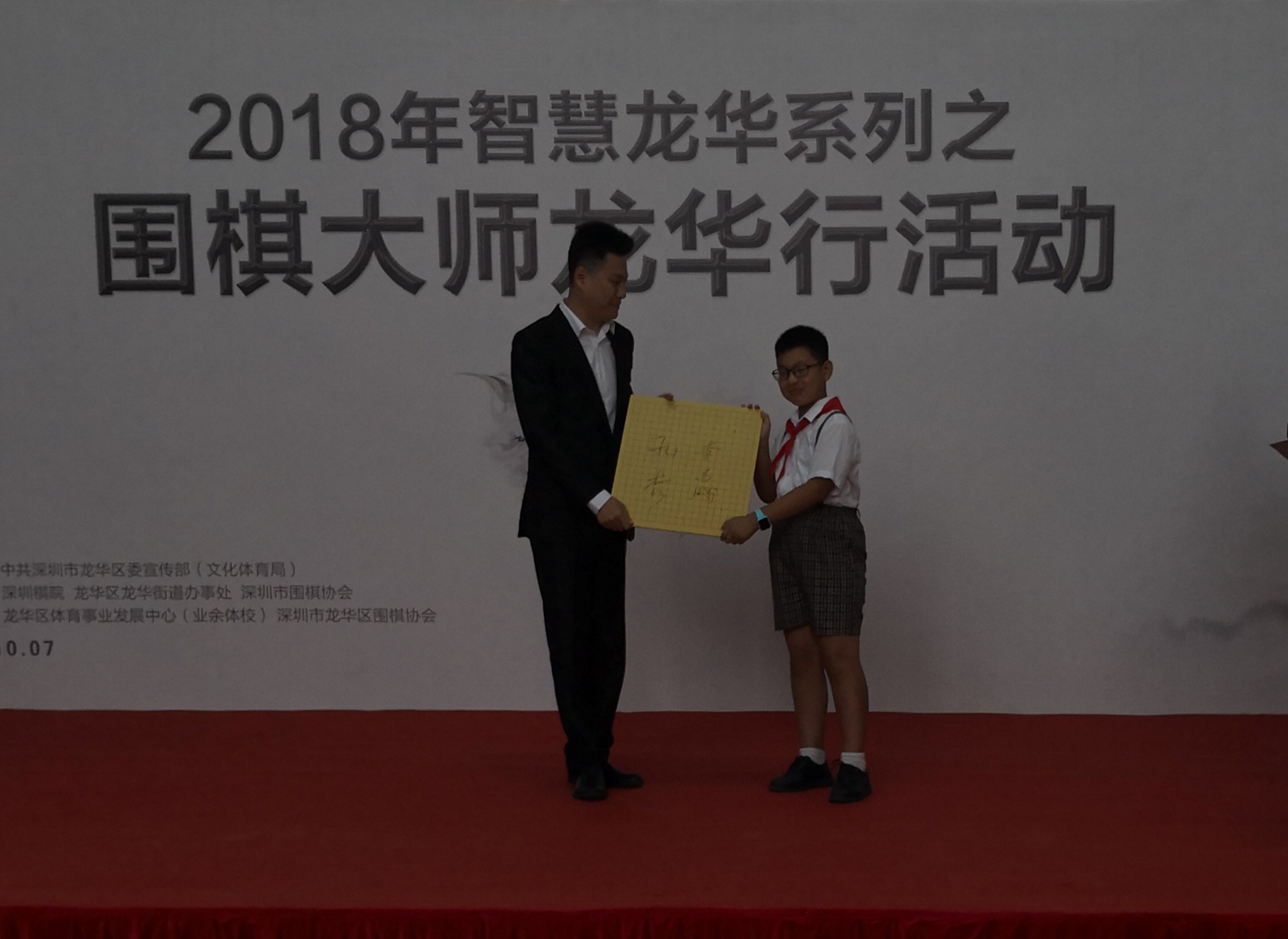 孔杰向小棋手贈送簽名棋盤