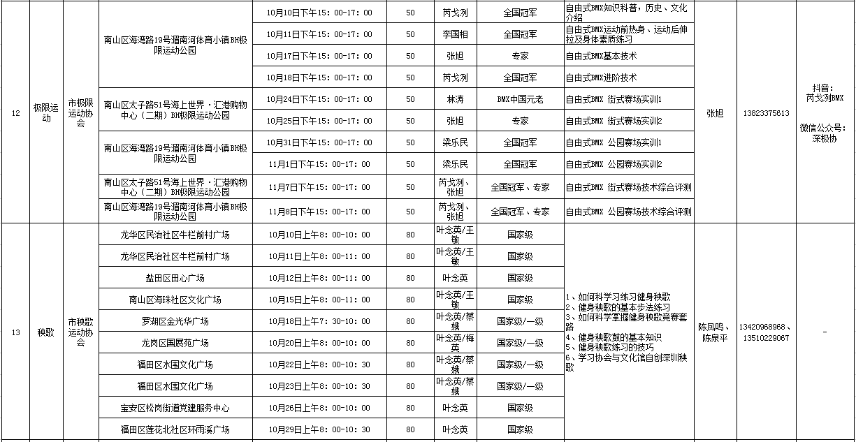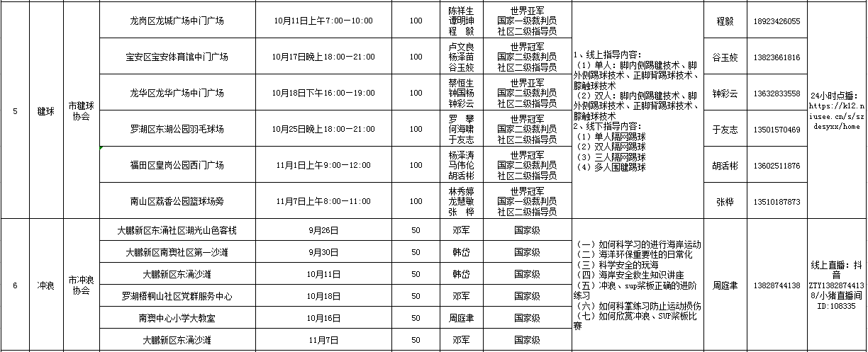“科學(xué)健身指導(dǎo)活動”由深圳市文化廣電旅游體育局主辦,旨在通過分批、分點等方式,在做好疫情防控的同時,針對不同人群進行戶外健身運動個性化指導(dǎo)服務(wù),助力全市煥發(fā)新活力,促進全民健身高質(zhì)量發(fā)展。活動自8月2日啟動以來,已有眾多一線社會體育指導(dǎo)員和體育產(chǎn)業(yè)專家通過深入社區(qū)現(xiàn)場教學(xué)、錄制視頻等方式,向廣大市民宣傳、講解科學(xué)健身的知識和方法。