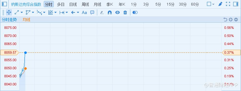 智通財經(jīng)APP獲悉,周三,美股基本平開,其中納斯達(dá)克指數(shù)盤初高走,升穿8046.315點,創(chuàng)紀(jì)錄新高。截至發(fā)稿,納指報8059.57,漲30點或0.37%。