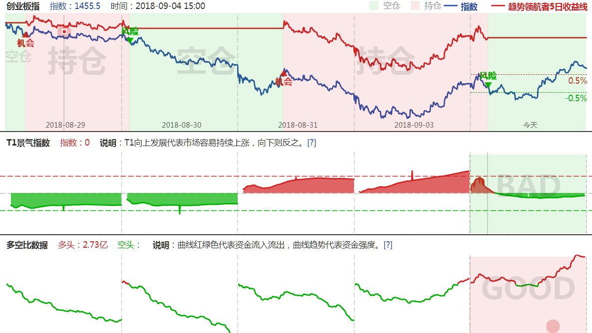 據(jù)云財(cái)經(jīng)獨(dú)家資金數(shù)據(jù),截止收盤,創(chuàng)業(yè)板T1(T1代表市場人氣)收在零軸下方,多空比數(shù)據(jù)(代表資金流)顯示創(chuàng)業(yè)板資金呈現(xiàn)凈流入的狀態(tài)。