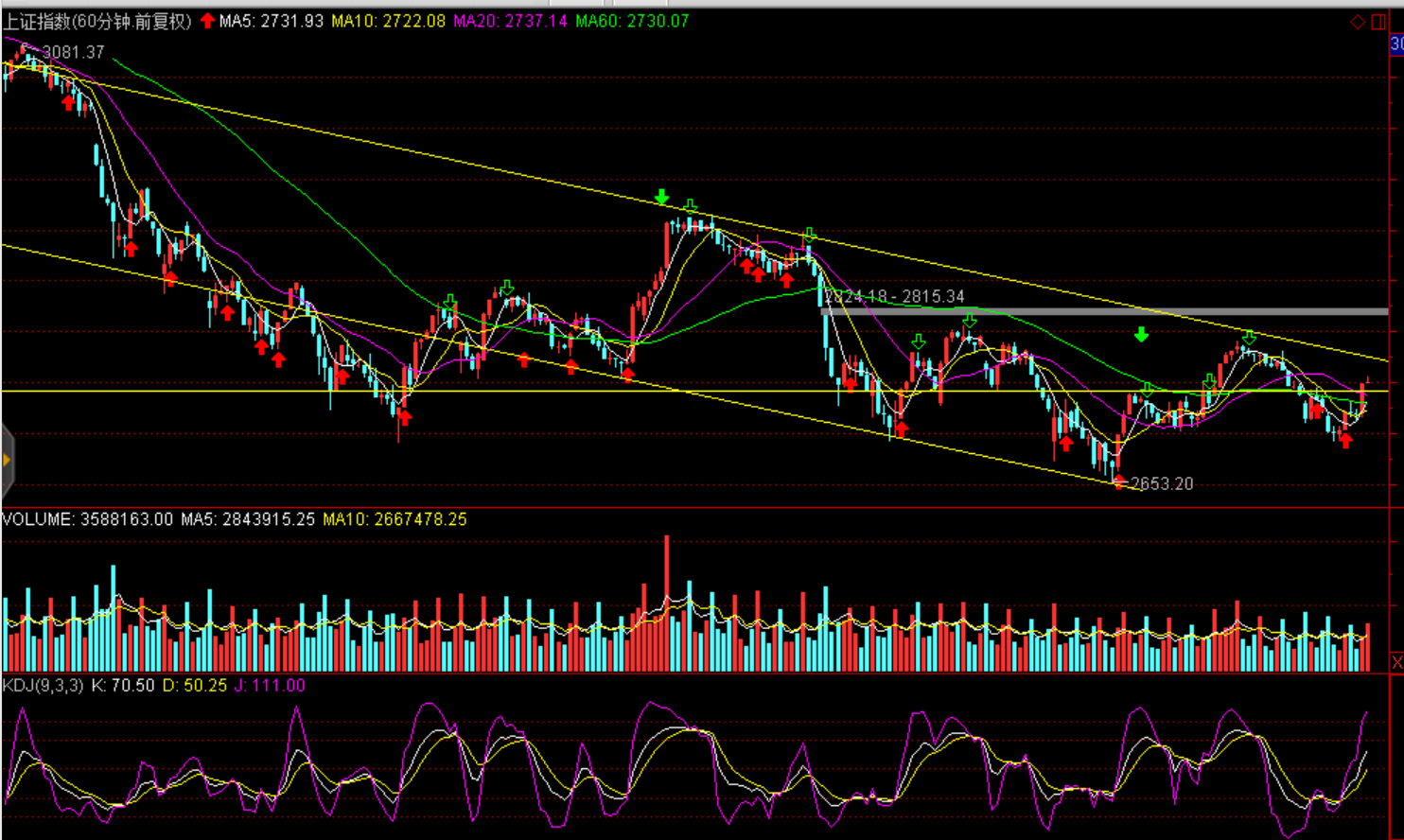周二兩市股指探底回升,中陽(yáng)報(bào)收,上證綜指收漲1.1%報(bào)2750.58點(diǎn),連續(xù)收復(fù)多道均線;深證成指漲1.17%報(bào)8554.44點(diǎn),創(chuàng)業(yè)板指漲0.82%報(bào)1455.5點(diǎn)。兩市成交2678.97億元,環(huán)比放大248億元。盤面看軍工、軟件、信息安全漲幅居前,金融、地產(chǎn)等權(quán)重反彈明顯,兩市合計(jì)52家公司漲停,短期市場(chǎng)活躍度快速提升,呈現(xiàn)普漲格局。