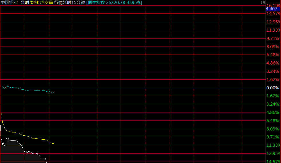 智通財(cái)經(jīng)APP獲悉,中國(guó)鋁業(yè)(02600)H股早盤急挫12%,現(xiàn)價(jià)與A股表現(xiàn)背馳,A股漲0.99%。截至9時(shí)58分,跌12.27%,報(bào)價(jià)3.36港元,成交額1.23億。