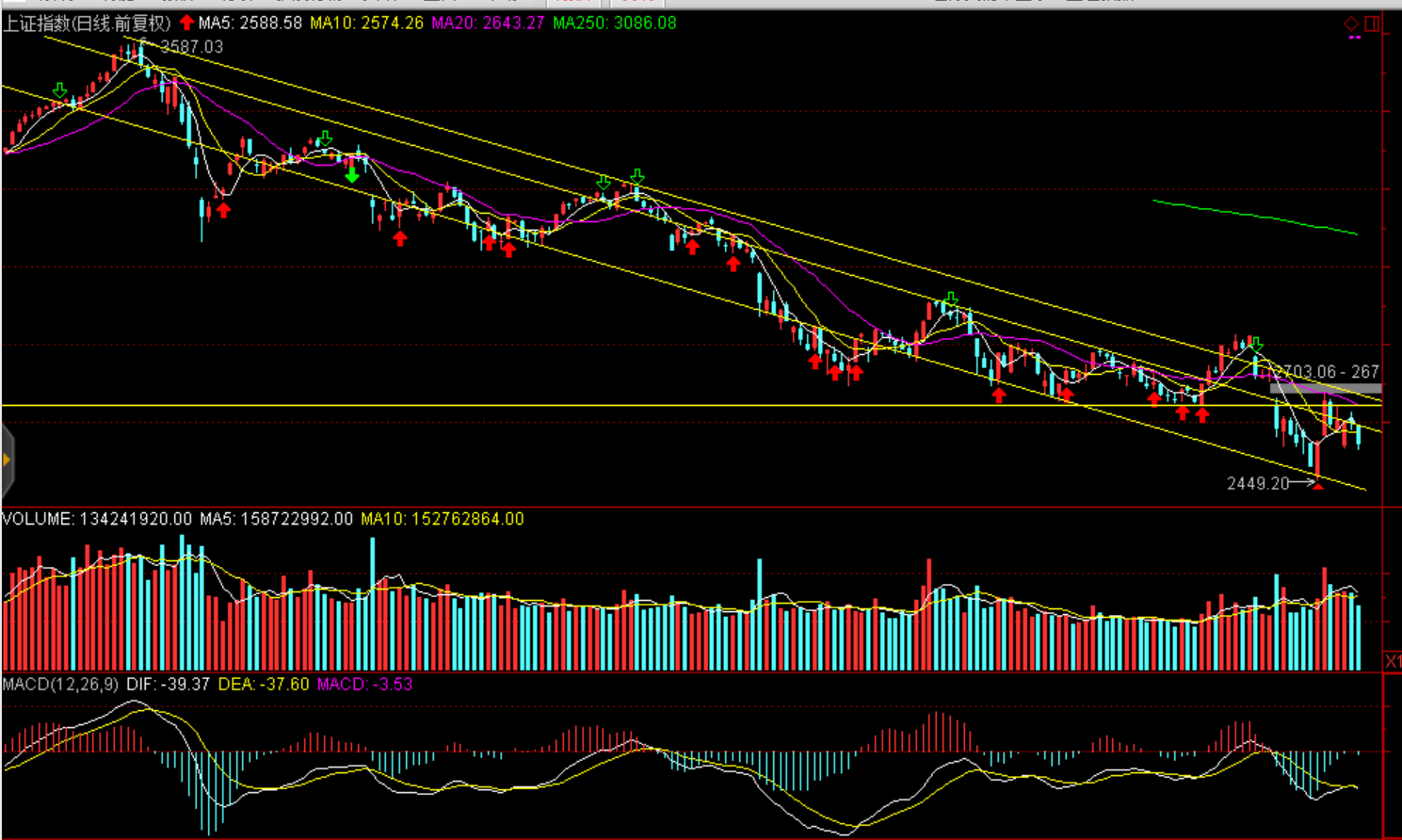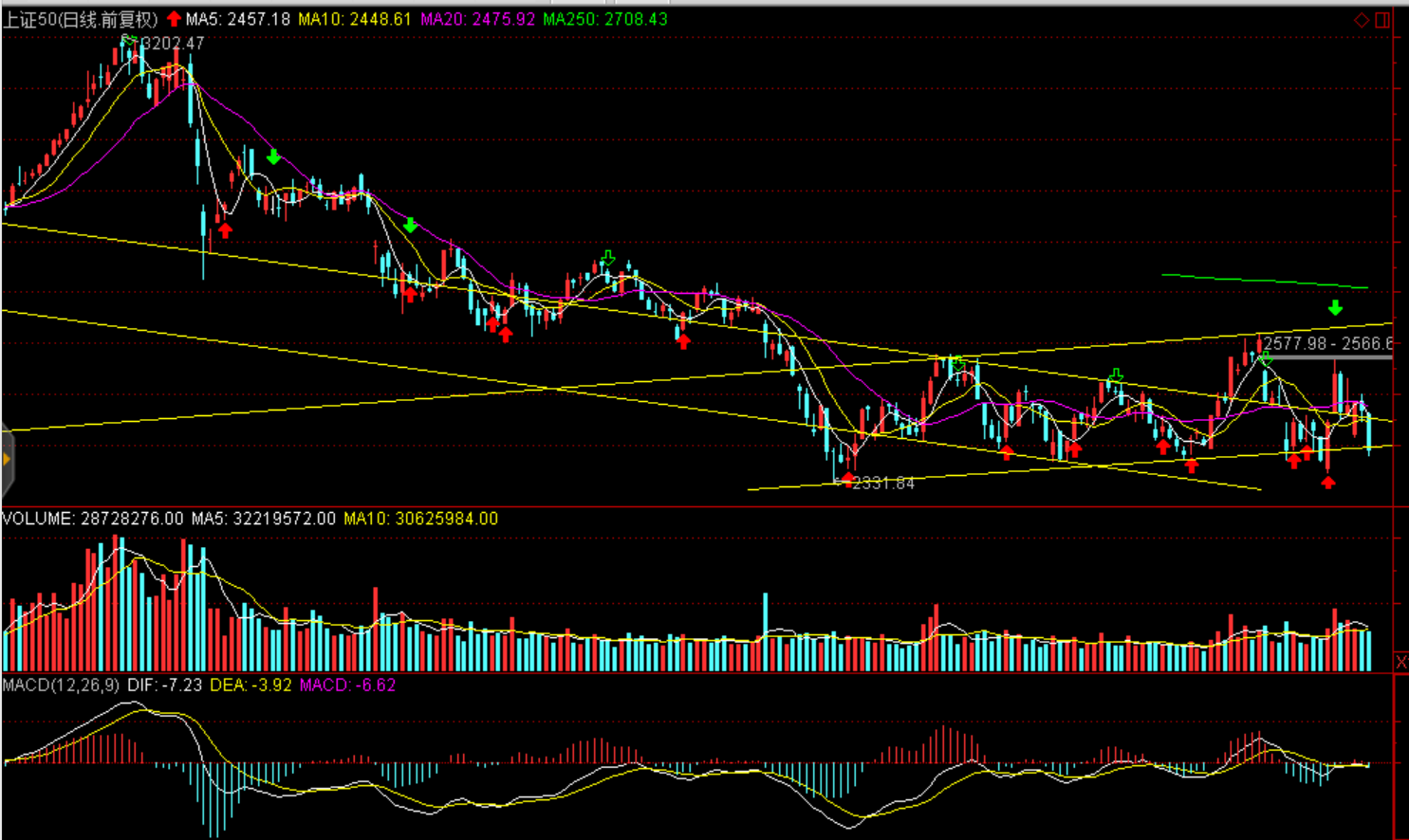 周一兩市股指全天震蕩下跌,股指均報收中陰線。上證50跌3.21%報2389.58點(diǎn),滬綜指收跌2.18%報2542.1點(diǎn),深證成指跌2.43%報7322.24點(diǎn),創(chuàng)業(yè)板指跌1.01%報1250.48點(diǎn)。兩市僅成交2554億元,環(huán)比減少271億元,北上資金今日逆勢凈流入逾29億元。盤面看白酒領(lǐng)跌大消費(fèi)白馬,茅臺跌停引發(fā)蝴蝶效應(yīng),食品、家電、醫(yī)藥聯(lián)袂大幅下跌,資金集中流出消費(fèi)白馬。